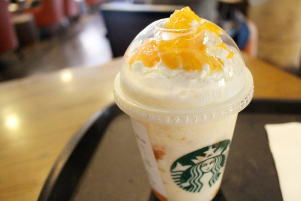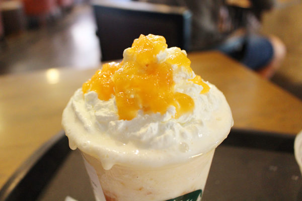 そしてお店の前で紹介されていた、メロンのホワイトチョコレートフラペチーノを注文したよ。