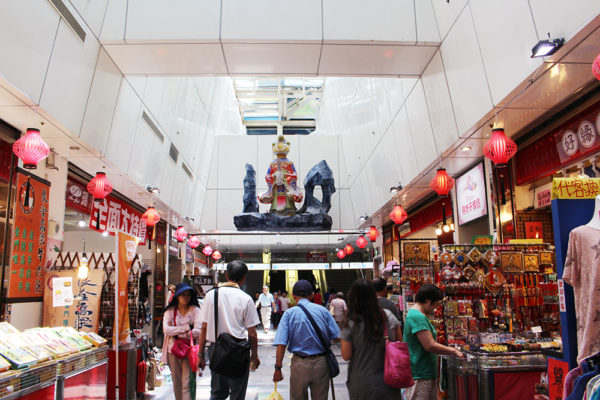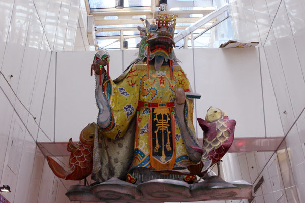 さすが、龍山寺の近くの商店街だから、神さまを飾ってあるんだろうね。