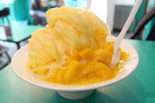 注文カウンターに行くと、お店の人がなにやらマンゴーのカキ氷をおススメしたきた。