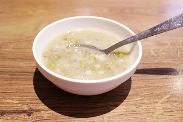 ここでちょっとおかずを離れ、緑豆のお粥を持ってきた。