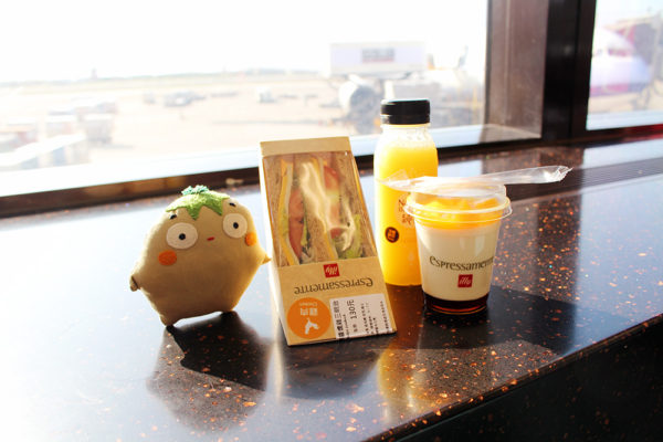 少しお腹が空いていたら、サンドイッチとパンナコッタとパイナップルジュースを購入。