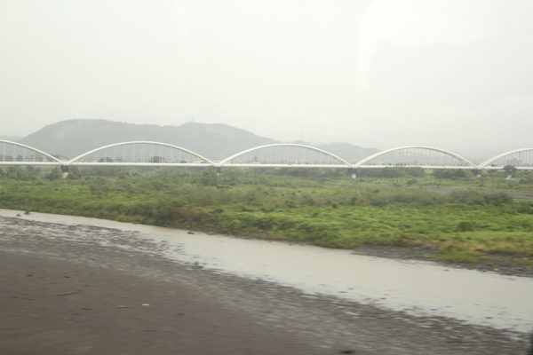新幹線の窓から外を見ると、あいにくのお天気。