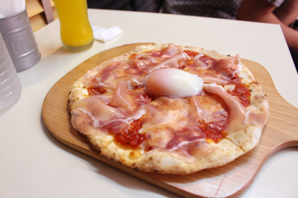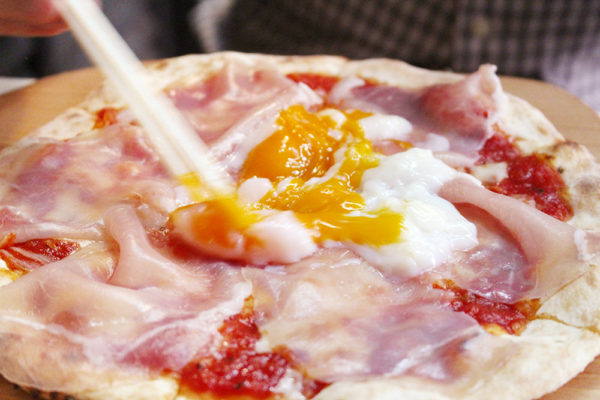 そして、注文した生ハムと半熟卵ピザがやって来た!!