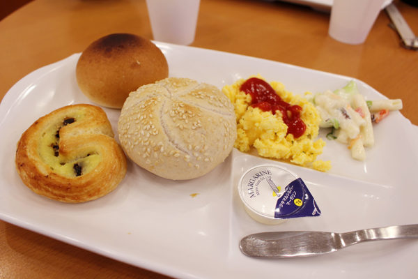 コンビニの食事が続いてしまったから、今回はバランス良く食事ができるように朝ごはん付きのホテルにしたんだ。