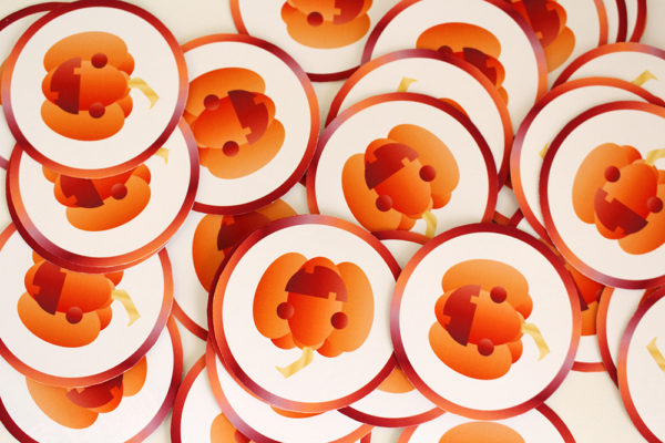 お菓子の箱に、イラストをプリントしたシール用紙を貼って、ハサミで一つ一つカットしていったの。
