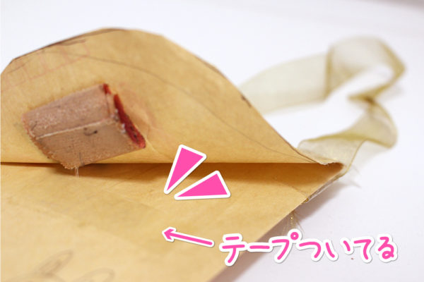 開閉部分には、ガムテープが紙の封筒にくっついてしまわぬように、透明のセロファンテープが仕込まれている。