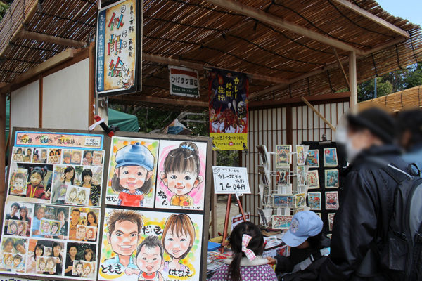 似顔絵はもちろん、ダジャレが効いたオモシロ絵ハガキなど、魅惑的な商品がいっぱいあったんだけどね。