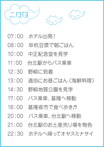 2泊3日の旅で一番充実させたい中日、2日目の計画表はこんな感じ~♬