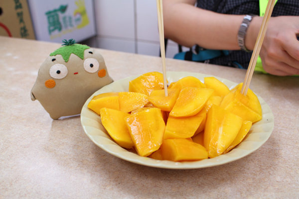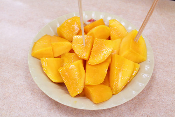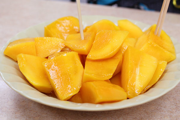 一皿で、愛文芒果を3つ~4つカットしているんだってさ。