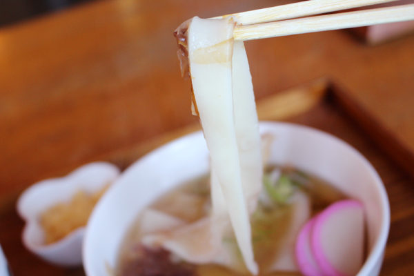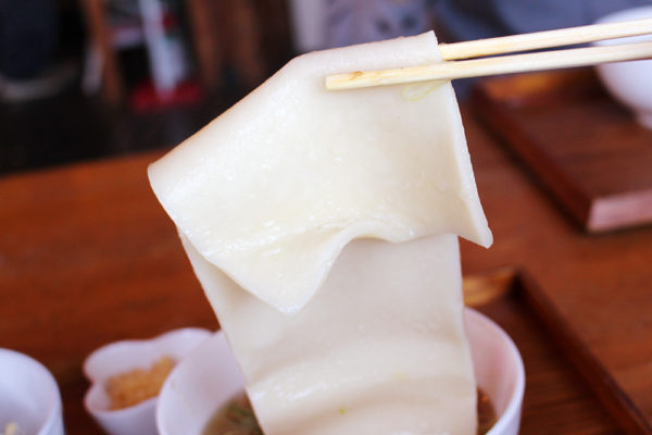 なんと、このうどんは一本の末広がりになった一反木綿のような麺なのだ!!