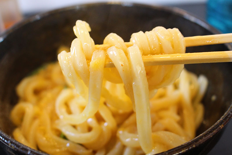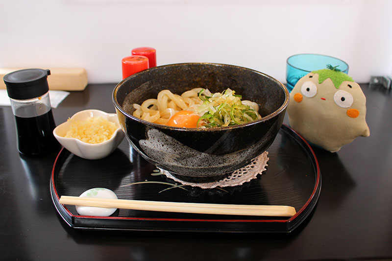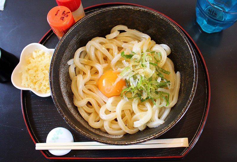 味噌煮込みでも食べようかと思っていたけど、暖かい季節だからかメニューには載っていなかったので、注文したのは釜玉うどん。