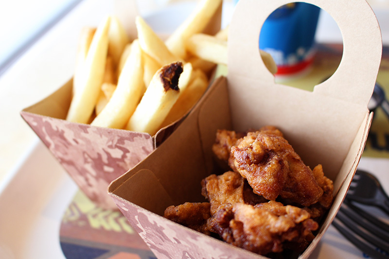 いたって普通に見える唐揚げに、ポテトだけど。