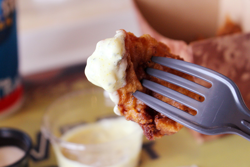 ちょっと酸味のあるソースをつけて食べる。