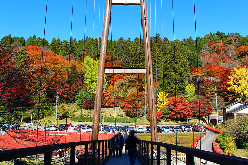 こちらの見どころは、何と言っても吊り橋に映える美しい紅葉よ!