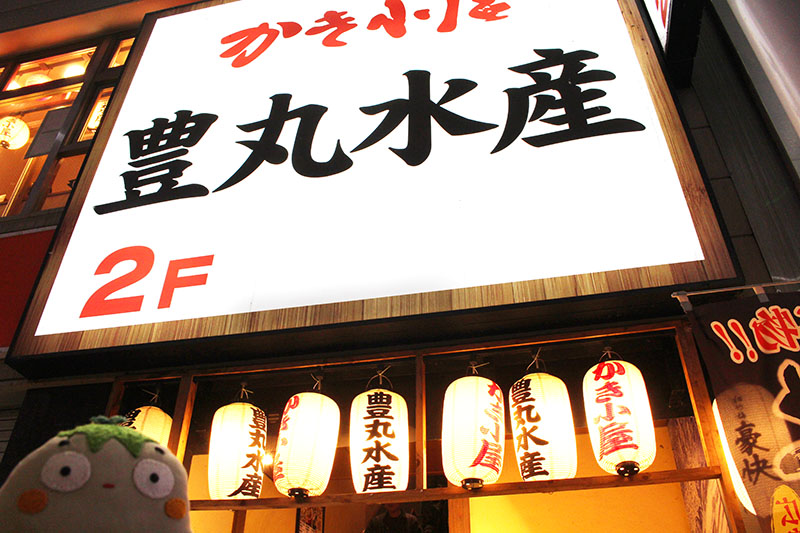 お次は晩ご飯を食べに、広島本通商店街にある「かき小屋 豊丸水産」にやって来た。