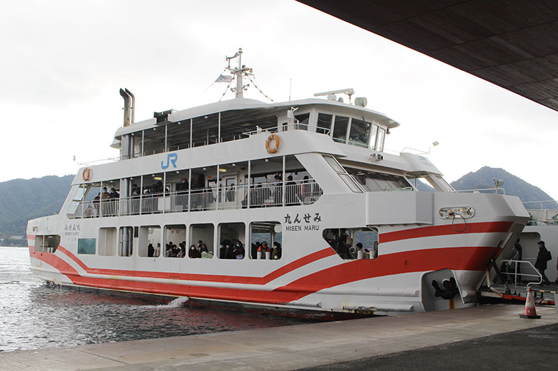 JRのフェリーの方が、厳島神社の大鳥居の近くを通ってくれるとのことなので、JRに乗っていくことにした。
