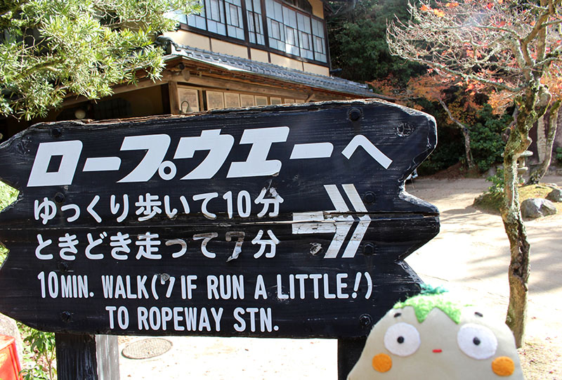 んで、ロープウエー乗り場までの案内に「ゆっくり歩いて10分」って書いてあったから、歩いて行くことにしたんだ。