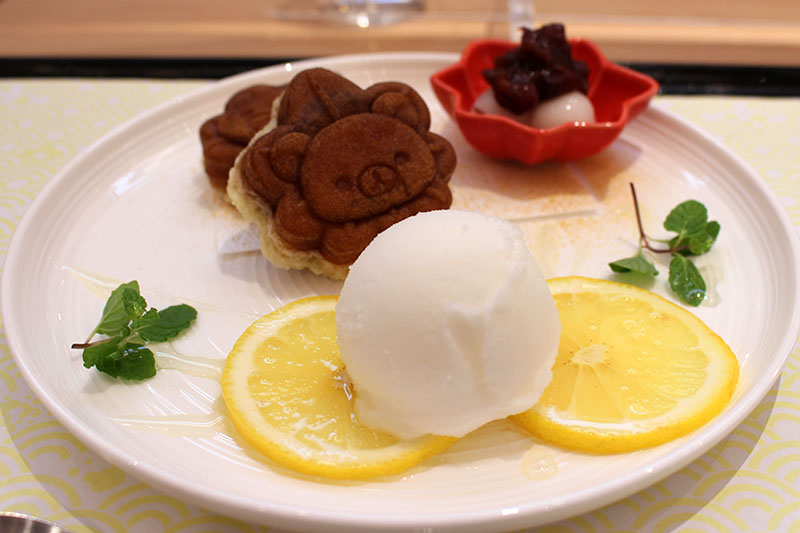 その手前にあるのは、名物のもみじ饅頭で、一番手前のシャーベットは瀬戸内レモンを使ったシャーベットだった。
