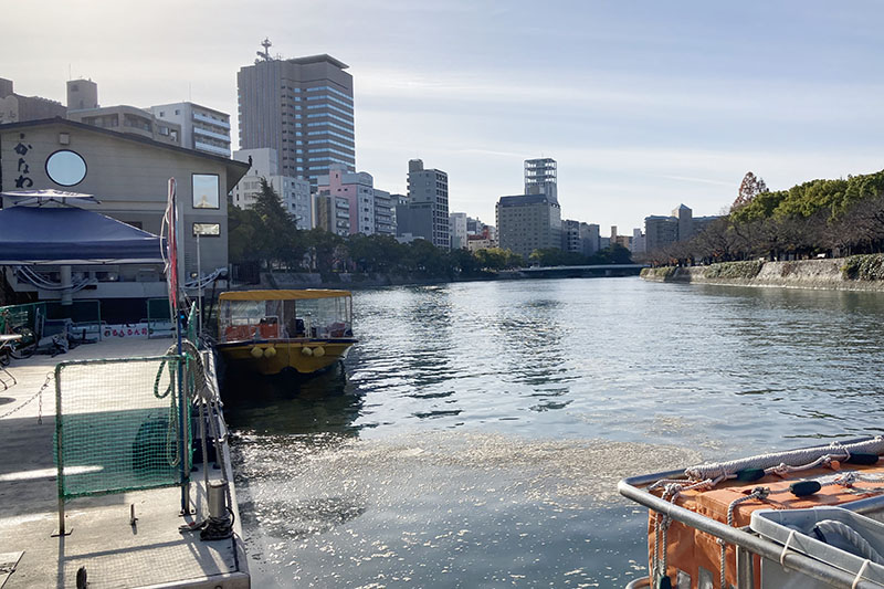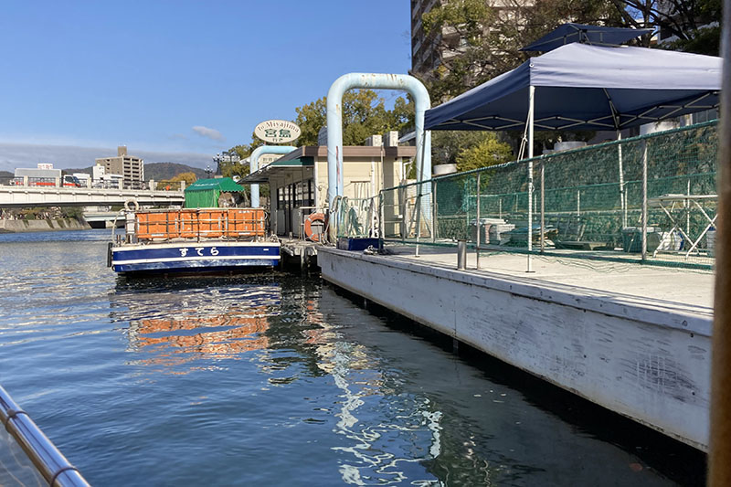この桟橋からは、お船に乗って広島の街を案内してもらえる遊覧船が出ている。