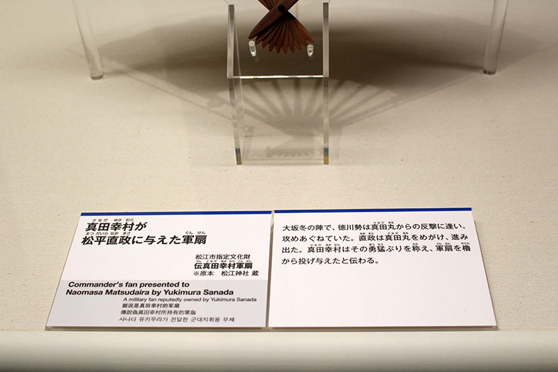 「真田信繁(のぶしげ)/幸村(ゆきむら)」から、大坂冬の陣の際に投げ与えられたと伝わる軍扇。