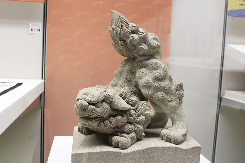 こちらは松江市で産出する石材「来待石(きまちいし)」の狛犬さん。