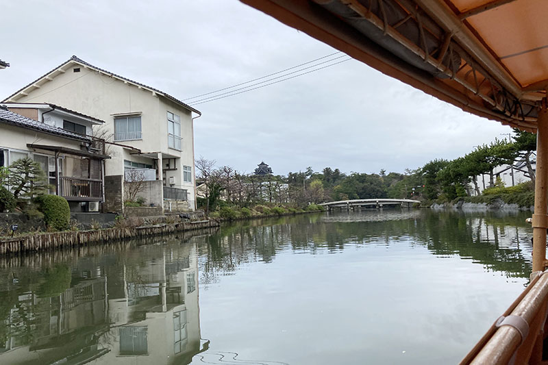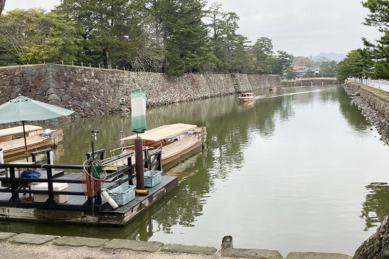 お天気が良すぎると反射して天守が見えづらいって、船頭さんがフォローしてくれていたけど。