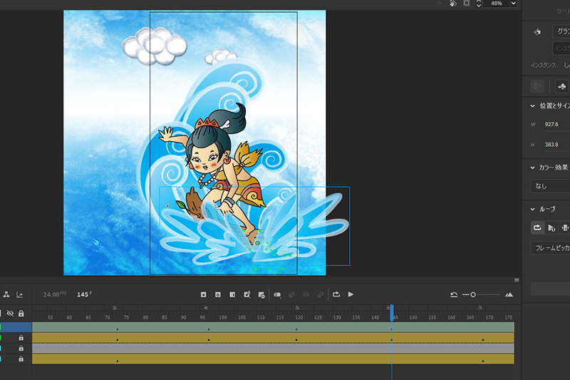 アニメイトの機能である「トゥイーン」とイラレで描いた一枚絵を組み合わせながら、動きをつけてみたけど…。