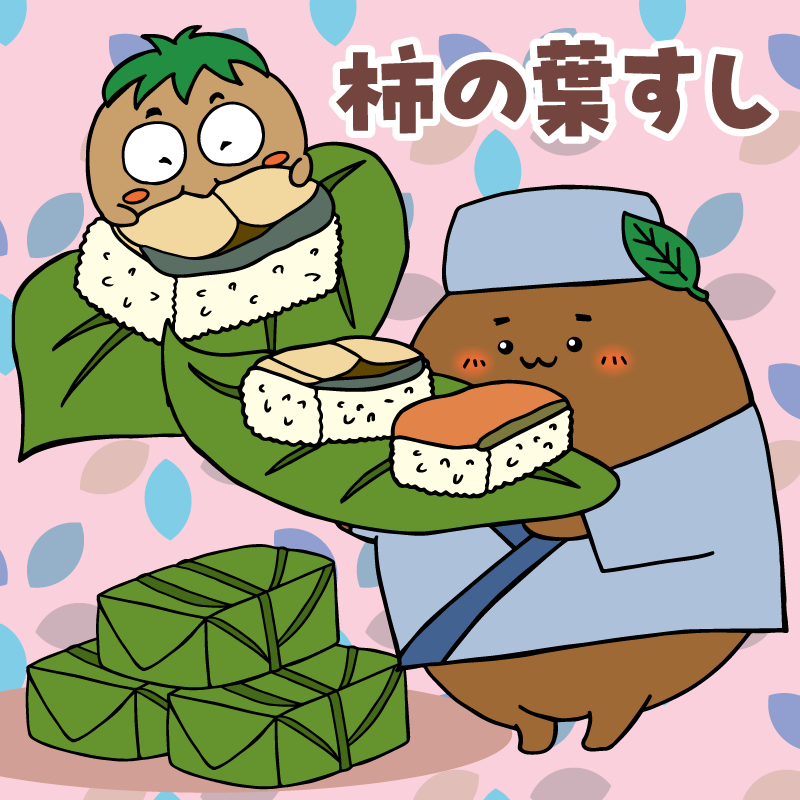 柿の葉にくるまれているから、何の具なのかがわかるようにシールがつけてあるね。