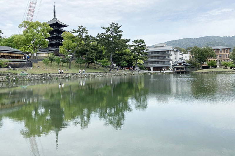 興福寺の五重塔が水面に映る、美しい奈良公園の名勝地だ。