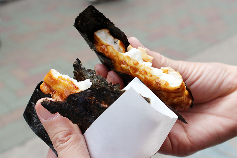 人気のよもぎ餅以外にも、おいしそうな煎餅が売られていたので、1つ購入してみた。