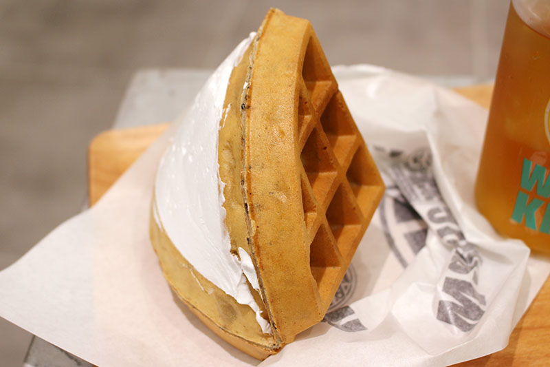 さすがに、いろいろ食べてお腹が膨れていたので、ワッフルはハーフサイズを注文。