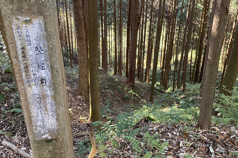 市場城のは、このくぼみ(土塁と竪堀)が交互にいくつか隣り合わせになっている「畝上竪堀群(うねじょうたてぼりぐん)」になっているそうなんだ。
