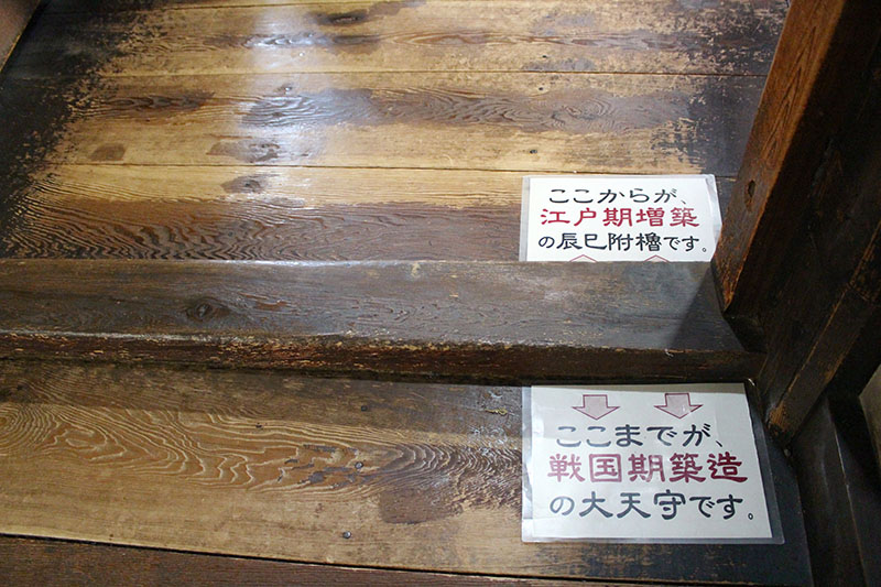 戦国時代に建てられた戦いに備えた天守と、平和な江戸時代に増築された櫓(やぐら)を見比べるってところかな?