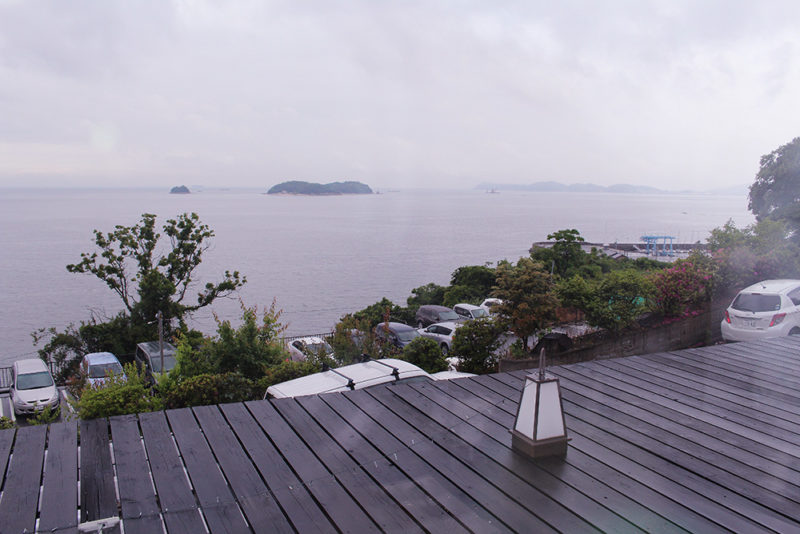 お天気が良ければオーシャンビューの素敵な景色を眺めながら、朝食って感じなんだろうけど・・・。