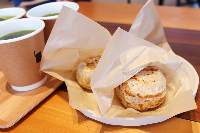 甘くない抹茶で、スッキリとした味わいがおやきによく合うんだよ!
