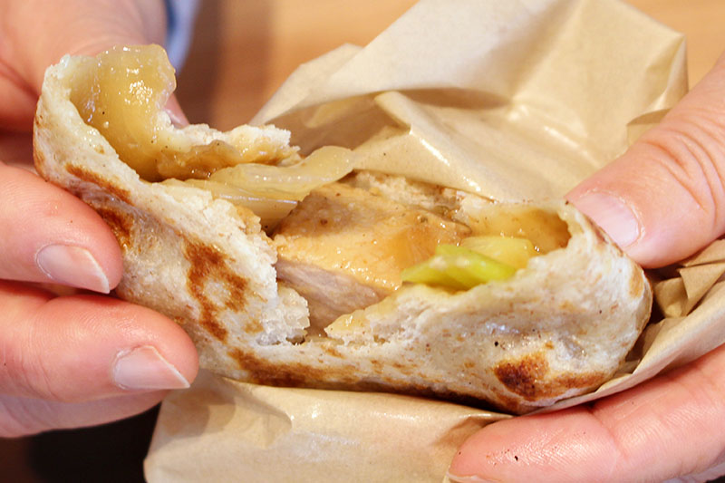 おやきにもいろんなタイプがあるらしく、最初に食べたのはふかふかした蒸し饅頭のような生地だった。