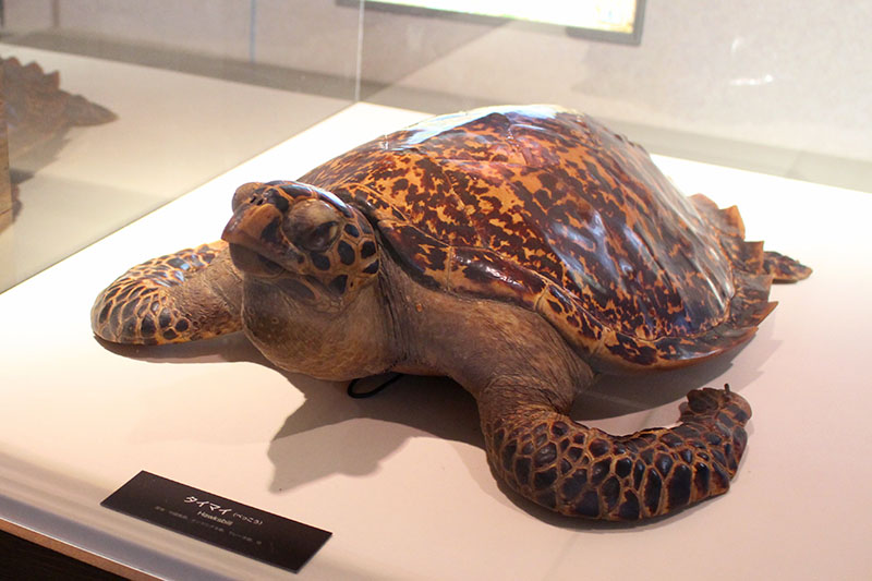 このウミガメさんは、取られすぎちゃって、今では禁漁となっているタイマイ。