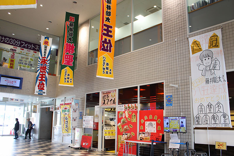 愛知県の瀬戸市は、将棋の藤井聡太さんの出身地ということもあって、建物の中は藤井聡太棋士の応援で活気ある雰囲気。