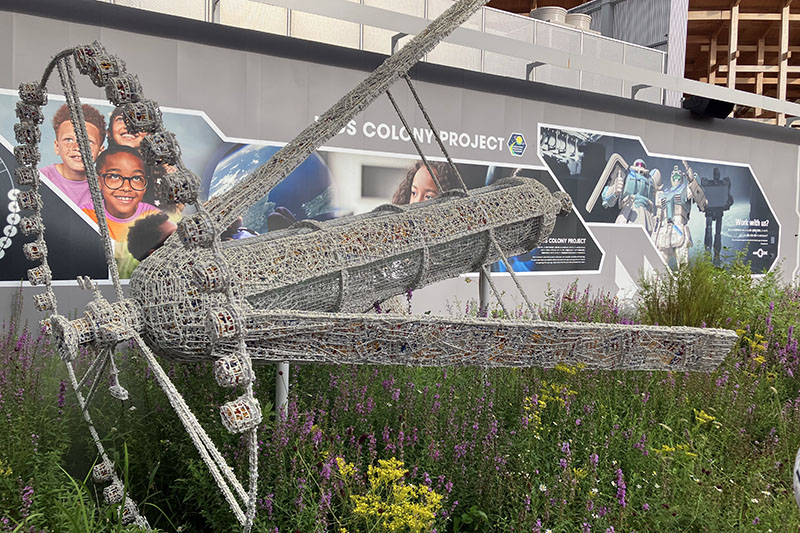 んで、こちらのモニュメントは、ガンプラの使用済みランナー(切れ端)を利用して作られたスペースコロニー。