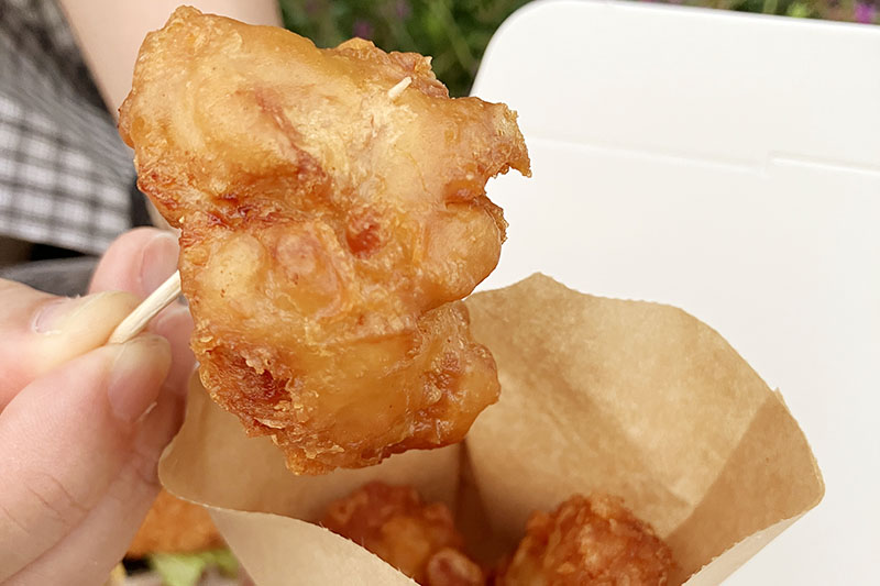 唐揚げは、けっこうパンチが効いたスパイシーな味わいで、こちらも普通のから揚げとは違う。