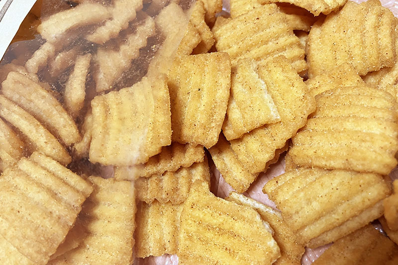 風味の良いピリッと辛いカレー味に、カリッと甘いかりんとう。