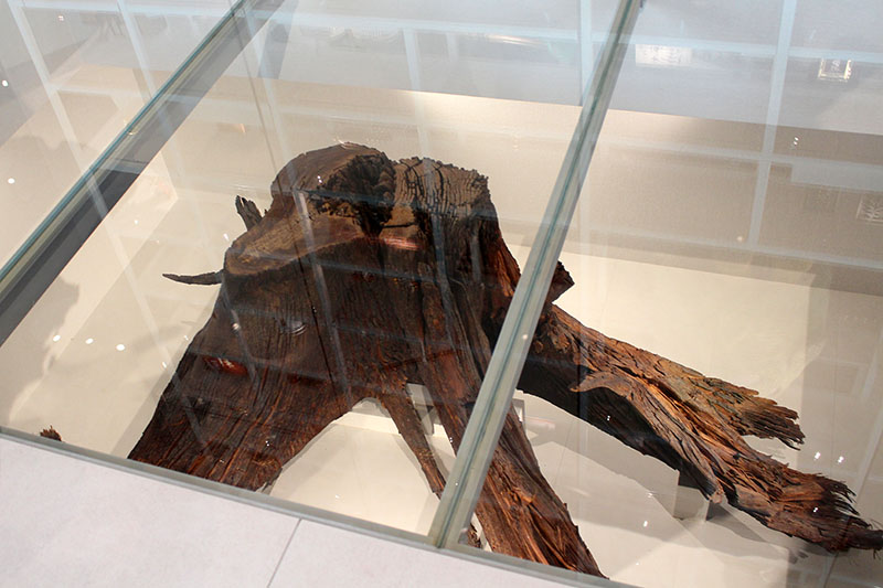 実はこの木、矢作川(やはぎがわ)という川の底に埋もれていたもので、腐らず縄文時代から残っていたんだって!