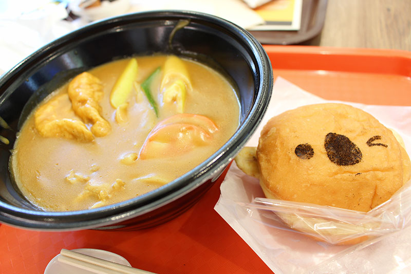 がりぼんは若鯱家(わかしゃちや)さんの、カレーきしめんと、コアラのクリームドーナツを食べたよ。