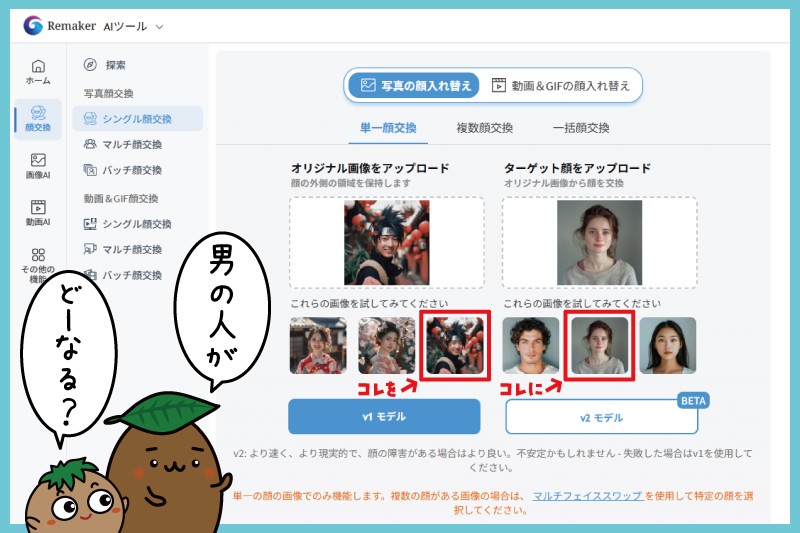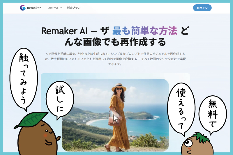 ってなわけで、今回は【無料・登録不要】のAIサイト「Remaker」にチャレンジしてみたよ!