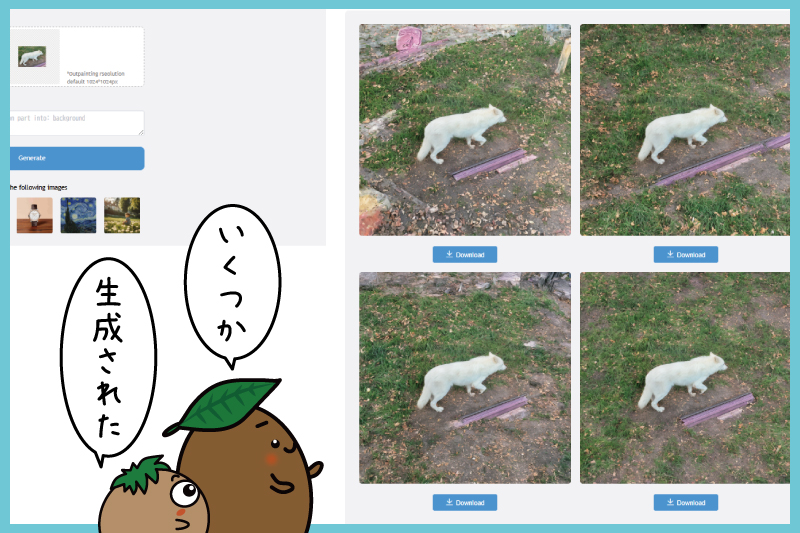 画像をアップロードして、生成ボタンを押すと、こんな感じになった!