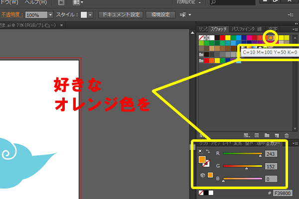 同じにしたい人はRGB、CMYKの色数値を図と同じように合わせて下さい。