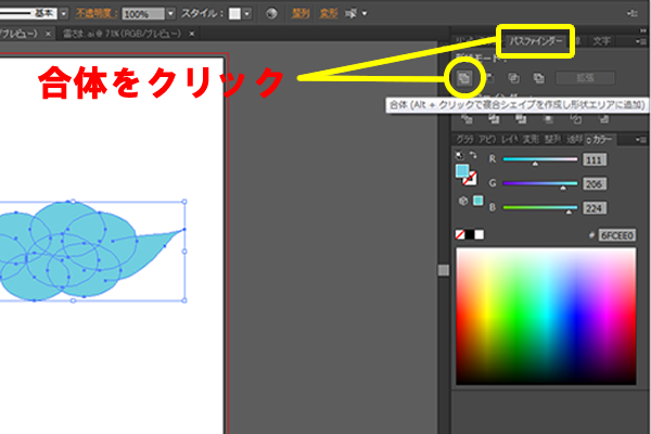 パスファインダーの「合体」をクリックして、一まとめにしてしまいます。