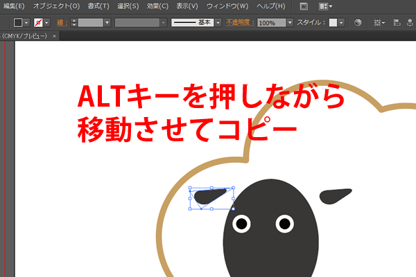 そして、描けた片方のお目目を黒矢印で選択して、「ALT」キーを押しながらドラッグドロップで移動コピーします。