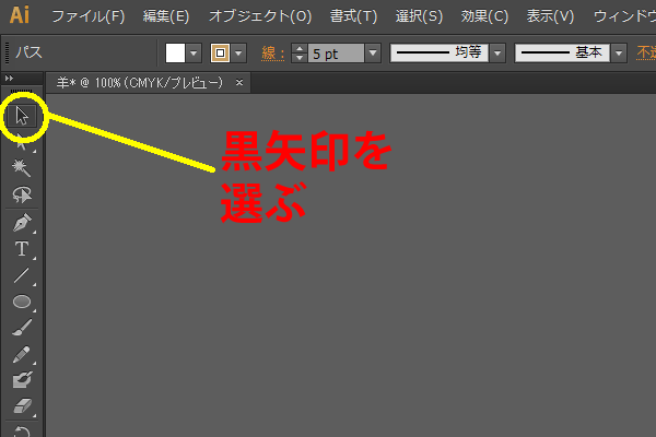 次にメニューバーの一番上にある選択ツール(黒矢印)をクリックします。