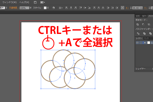 丸をコピーして配置し終えたら、キーボードの一番左端下にある「CTRL」というキーとアルファベットの「A」ボタンを同時に押します。